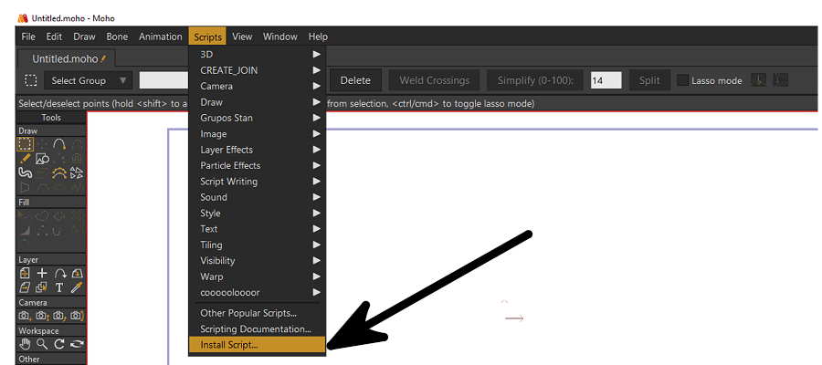 2) Step two, open Moho and go to the «Scripts» section: