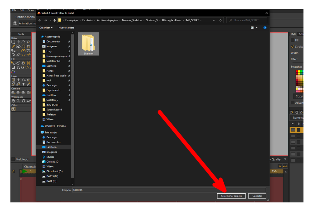 The file explorer will open, now you must select the «Skeleton» folder that was unzipped in step one.